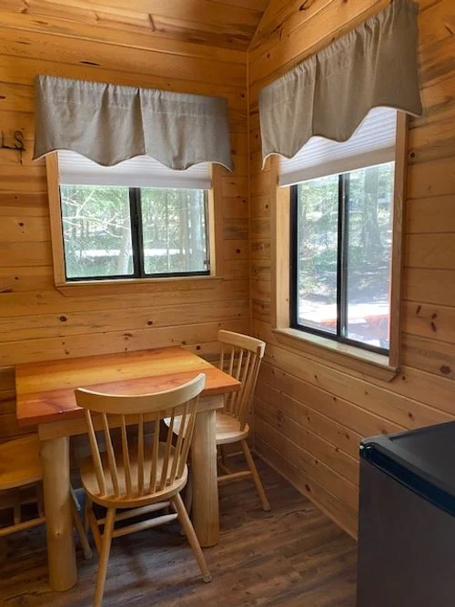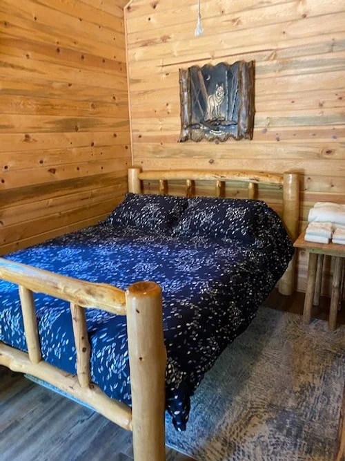 The Wolf Lodge is an enticing cabin that sleeps up to four people. Providing a scenic camping experience surrounded by mountains and forests. Full-service pricing includes bedding, and basic service pricing is bring your own bedding. NO DISCOUNTS